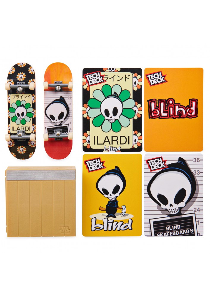 Inhoud: 2 gemonteerde Tech Deck-fingerboards (stijlen kunnen variëren), 1 obstakel, 4 uitdagingskaarten