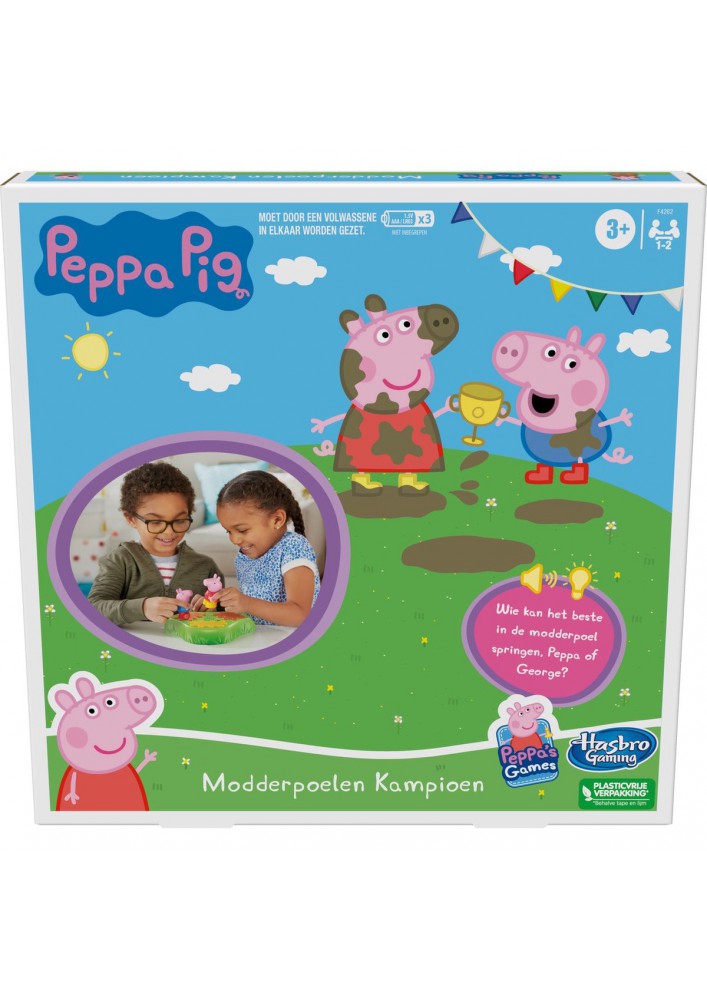 - SPRING OM TE WINNEN ALS PEPPA OF GEORGE: kinderen kunnen spelen als hun favoriete varkentje, Peppa of haar broertje George. Wie op de meeste modderpoelen springt voordat de muziek stopt, heeft gewonnen