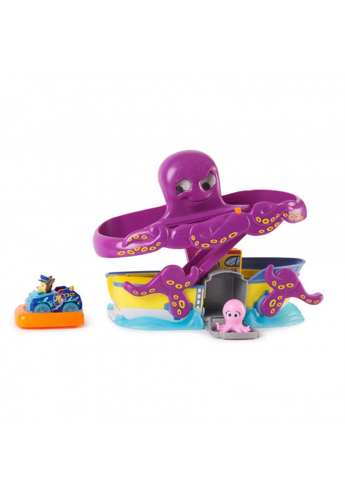 Beleef spannende avonturen met de PAW Patrol Pup Squad Octopus Rescue-speelset. Deze boeiende speelset bevat een groot octopus-racecircuit boven op een schip, waarmee kinderen hun creativiteit de vrije loop kunnen laten en hun verbeelding kunnen gebruiken om heldhaftige missies uit te voeren. De speelset bevat ook een Pup Squad Racer Chase van 6,3 cm, die klaar is om rond het circuit te racen. Kinderen kunnen de tentakels van de octopus omhoog en omlaag bewegen om Chase te laten racen. Druk dan op een knop en laat de helling en een valluik zakken, om de babyoctopus te redden en terug te brengen naar zijn moeder. De helling leidt Chase naar een reddingsvlot voor een spannende finale. Dit educatieve PAW Patrol-speelgoed is fantastisch voor een verjaardag, kerst of andere feestdagen. Combineer het voor nog meer plezier met de Pup Squad Racers en speelsets, zodat je urenlang lekker kunt spelen (elk afzonderlijk verkocht). Herbeleef geliefde momenten uit vroegere PAW Patrol-seizoenen, zoals de Mega Pups en de PAW Patrol-film, of bedenk nieuwe avonturen met een PAW Patrol-toren, losse PAW Patrol-actiefiguren en hun PAW Patrol-voertuigen. Beleef eindeloos veel superspannende avonturen.