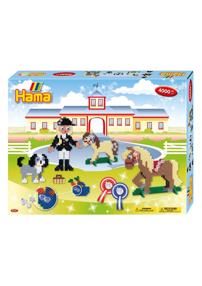 Met deze leuke strijkkralenset kan je je eigen manege van strijkkralen maken! Volg de voorbeelden en leg de strijkkralen op de juiste plek op het legbordje neer. Daarna kan je aan een volwassene vragen ze te strijken. Als ze afgekoeld zijn, kan je het figuurtje van het legbord halen. Maak alle voorbeelden na en voor je het weet heb je paarden, een ruiter, een hond en nog veel meer! Versier de figuren met de Hama edelstenen en daarna kan je er lekker mee spelen! Doe alsof je wedstrijden rijdt en de paarden een prachtige prijs krijgen. Je kan de set natuurlijk ook tentoonstellen op je kamer. Zo heb je altijd iets leuks om naar te kijken en kan iedereen bovendien zien hoe creatief je bent!