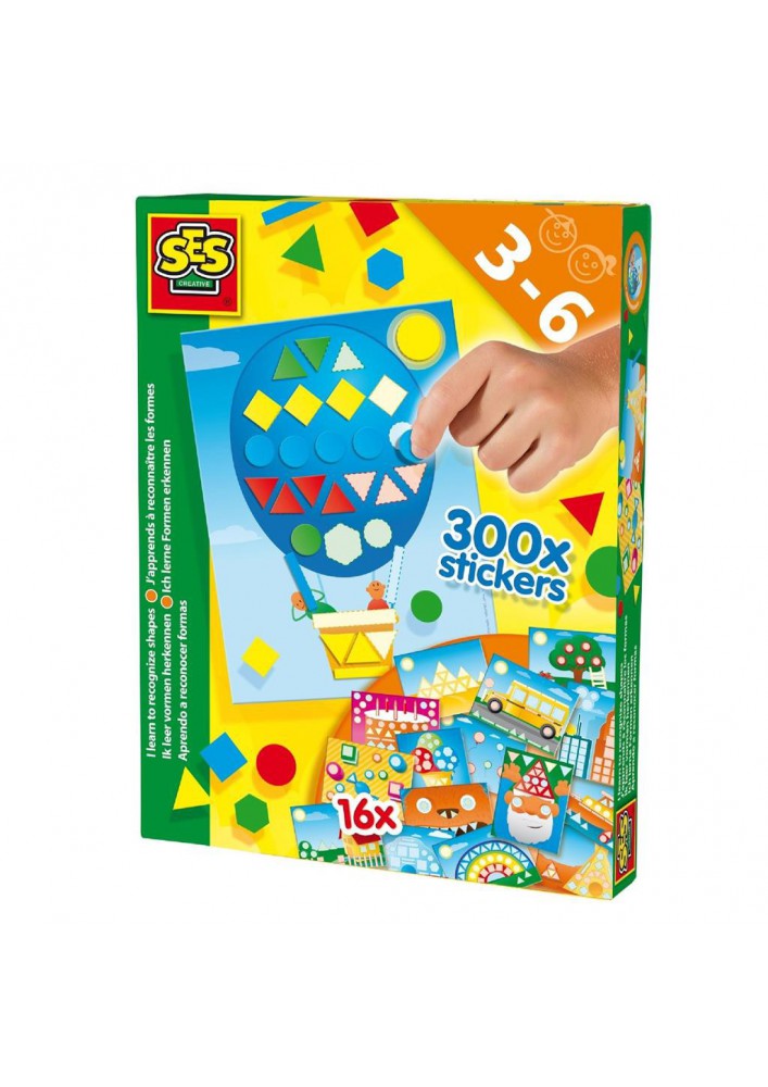 SES Creative Ik leer speelset: leer de verschillende vormen herkennen! Welke vormen hebben de wielen van een bus? En de piramide of de ramen van een wolkenkrabber? Zoek de juiste vorm met de juiste kleur en plak deze op de vellen(zie stippellijn). Binnenkort zal je overal om je heen vormen gaan zien. Inhoud:16 plakvellen in verschillende thema's: 7 vellen met plakkertjes in verschillende vormen en kleuren: vierkant, balk, cirkel, driehoek, zeshoek. Leeftijd vanaf 3 jaar.