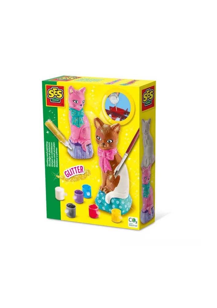 Ook dol op katten. Leuk voor zowel volwassenen als kinderen om zelf te maken. Giet de 3D latex mal vol gips en schilder de beeldjes met de zes kleuren plakkaatverf. De gouden glitterlijm staat garant voor een stralend resultaat.