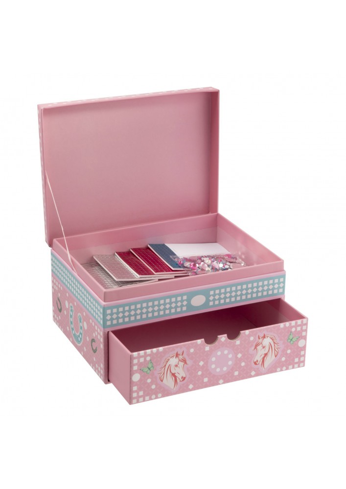 Juwelenkistje uit de Horse Collection. Voorzien van spiegel, opbergvakjes en lade. Geschikt voor kinderen vanaf 3 jaar.