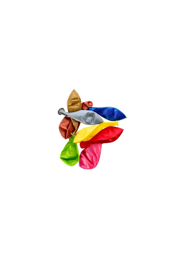 Ballon Metallic 35 Cm Assorti. Verpakking met 8 ballonnen van ca. 35 cm. De ballonnen hebben verschillende kleuren en een metallic uitstraling.
