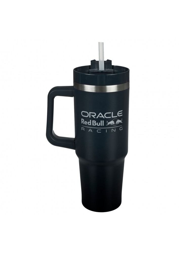 Dubbelwandige drinkbeker van gerecycled roestvrij staal. Sluiting met geïntegreerd PE-rietje.