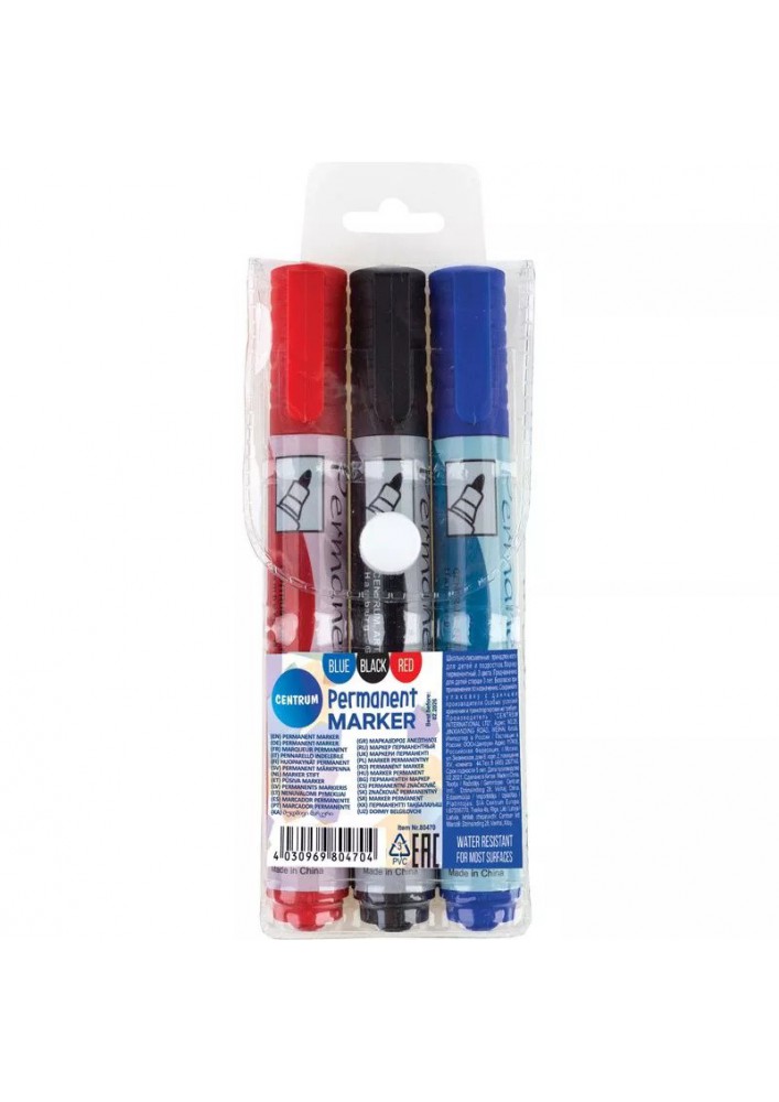 Set van 3 permanente markers (zwart, blauw, rood), met ronde punt. schrijfdikte 2-5 mm