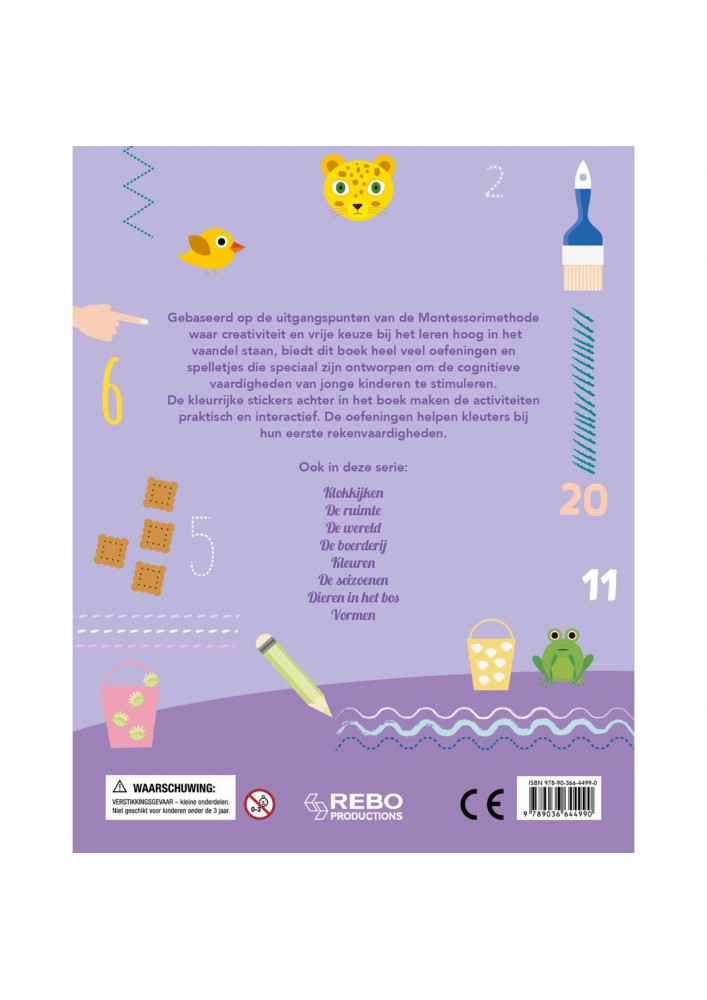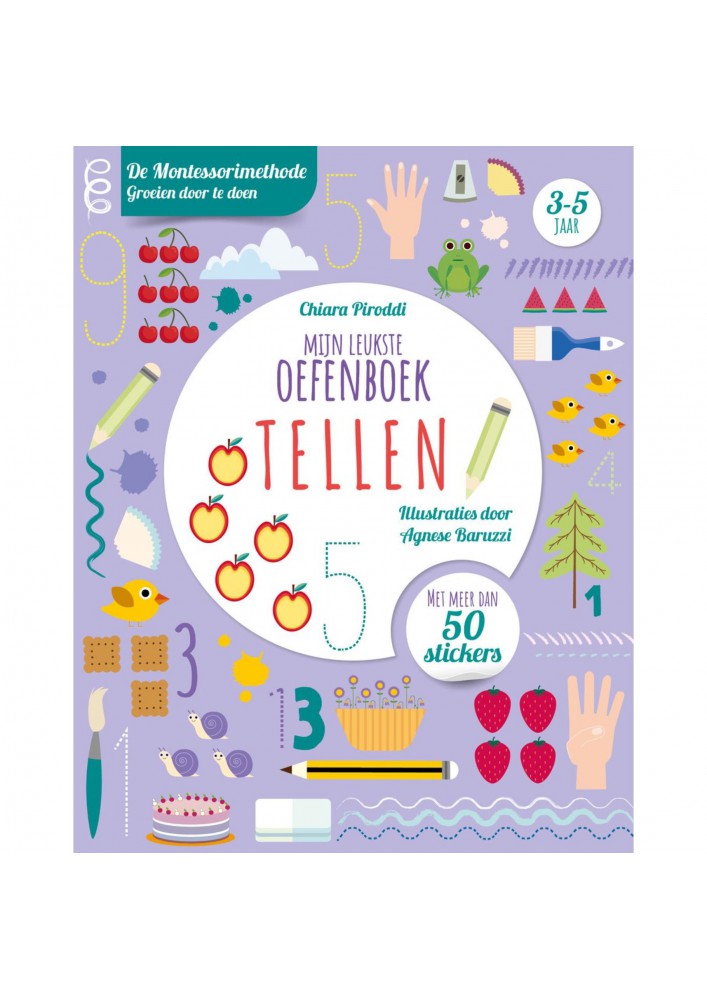 Oefenboek met telopdrachten en stickers. Stimuleert spelenderwijs tellen en cijferherkenning. Geschikt vanaf 4 jaar.