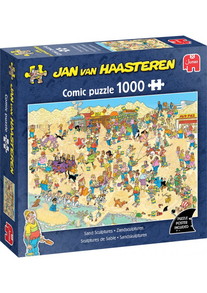De Jan van Haasteren familie is druk bezig met het maken van de mooiste zandsculpturen! Kun jij alle leuke details ontdekken? Deze legpuzzel bestaat uit 1000 stukjes.