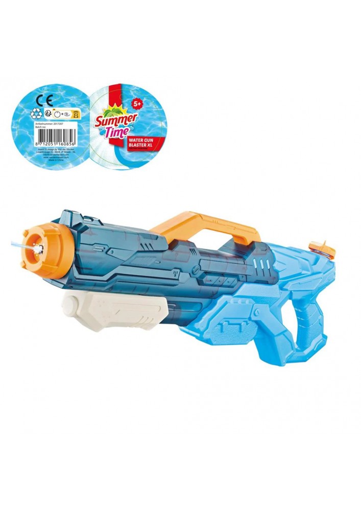 Summertime waterpistool Blaster XL, met dit waterpistool kun je 10m ver schieten! Het is zeer eenvoudig te bedienen dmv push/pull functie.Dit waterpistool is uitgerust met 4 verstelbare sproeiers, je kunt schakelen tussen de volgende sproeistanden: nevel, een rechte waterkolom, dubbele waterkolommen en zelfs driedubbele waterkolommen! De lengte is 58cm en dit waterpistool heeft een extra grote watertank met een inhoud van maar liefst 1500ml! Voorzien van een hangtag. Geschikt voor kinderen vanaf 5 jaar.