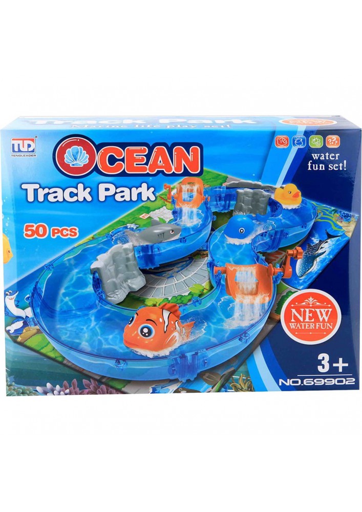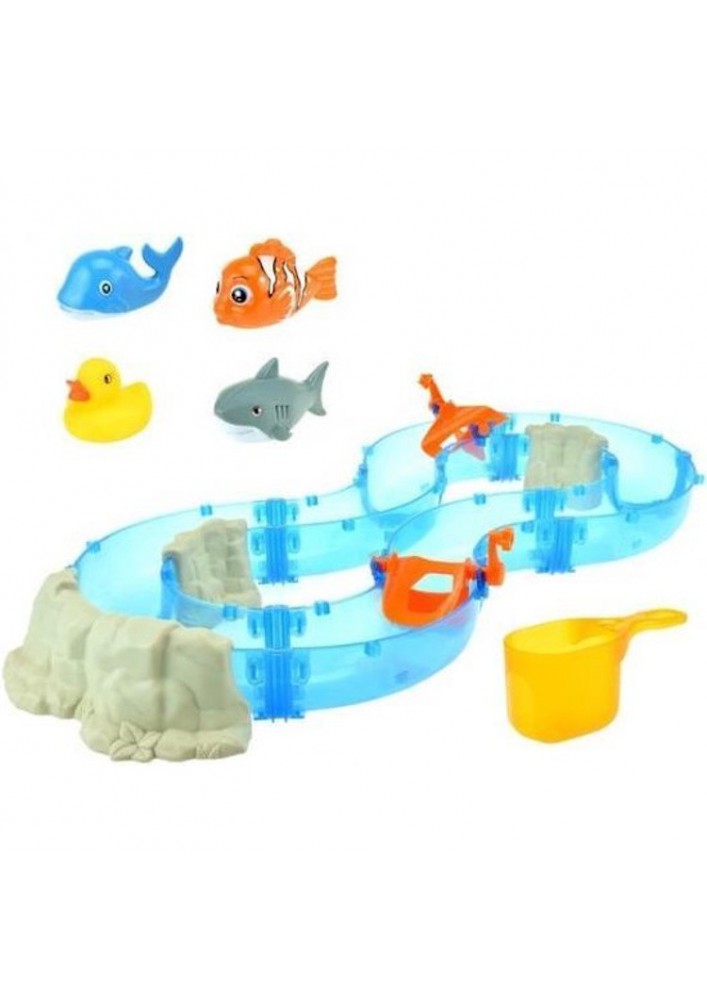 Waterbaan 50-delig. Bouw deze stoere waterbaan in elkaar en zie hoe de vis, haai, eend en bootjes door de stroming meegevoerd worden. Met verschillende leuke elementen zoals waterraden en rotsen ter versiering. Inclusief een bijpassende ondermat. Geschikt voor kinderen vanaf 3 jaar.