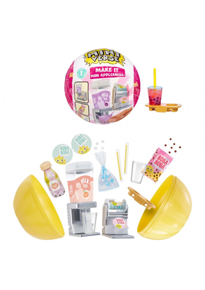 In elke bol zit één echt werkend mini-apparaat, plus accessoires en ingrediënten om je miniatuurtraktaties te maken! De machines omvatten: suikerspinmachine, schaafijsmachine, mixer en een softijsmachine, elk in 2 verschillende kleuren, in totaal 8 machines om te verzamelen.