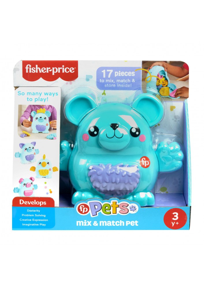 Peuters en kleuters vinden het geweldig om alle wonderlijke en maffe dierenvriendjes te ontdekken die ze kunnen maken met het FP Pets Mix & Match Dierenvriendje bouwspeelgoed van Fisher-Price. Met het basislijfje en 17 onderling verwisselbare oren, ogen, kapsels en meer kunnen kids 5 herkenbare diertjes maken. Maar ze kunnen de onderdelen ook combineren om hun eigen, unieke dierenvriendje te maken! Het formaat van de onderdelen is perfect geschikt voor kinderhandjes en alles kan in het lijfje worden opgeborgen, zodat de set ook overal mee naartoe kan. Afwijkende kleuren en versieringen mogelijk.
