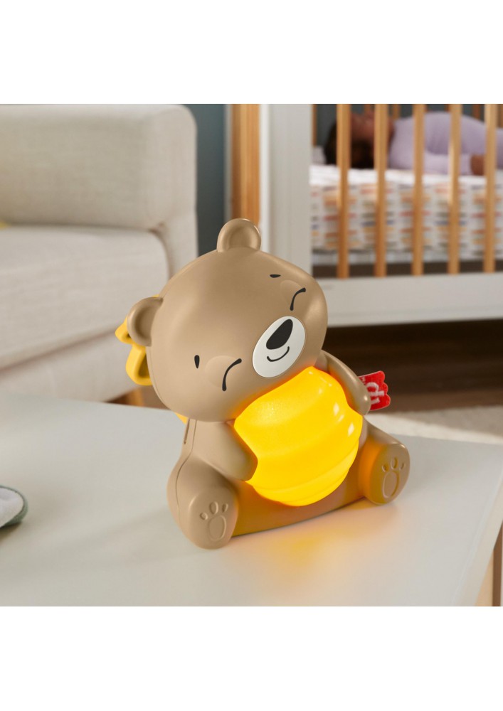 Het geluidsapparaat in de vorm van dit schattige kalmerende beertje van Fisher-Price geeft meer dan 18 uur muziek en natuurgeluiden om je baby gerust te stellen. Stel in op 30 of 60 minuten of als je wilt op de hele nacht door afspelen, aangepast aan wat je kindje op dat moment nodig heeft. Het beertje heeft een zacht lichtgevend nachtlampje en een snel oplaadbare batterij die het geluidsapparaat dag en nacht paraat houdt. Een bijgevoegd honingbij-verbindingsstuk kan worden gebruikt om de beer tijdens een trip te verbinden met een wandelwagen, luiertas of hemeltje.