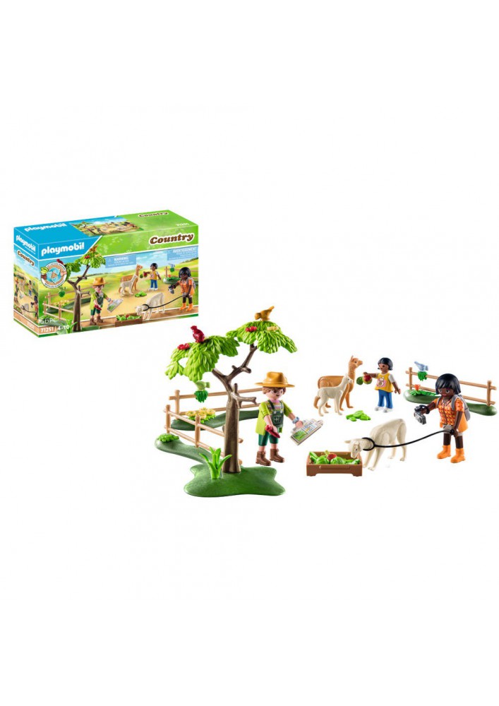 Een wandeling met alpaca's is een heel bijzondere ervaring. Het van dichtbij bekijken en aaien van de pluizige dieren is leuk voor zowel kinderen als volwassenen. Tegelijkertijd valt er veel te leren over het dieet en de levensstijl van deze fascinerende dieren. De schattige alpaca's kunnen geleid worden met behulp van het halster. Groenvoer is beschikbaar als beloning. De 56-delige Playmobil Country 71251 Alpaca Wandeling-set bevat drie speelgoedfiguren, twee alpaca's en twee baby alpaca's, sla, appel, eten en andere extra's voor een leuke alpacawandeling.