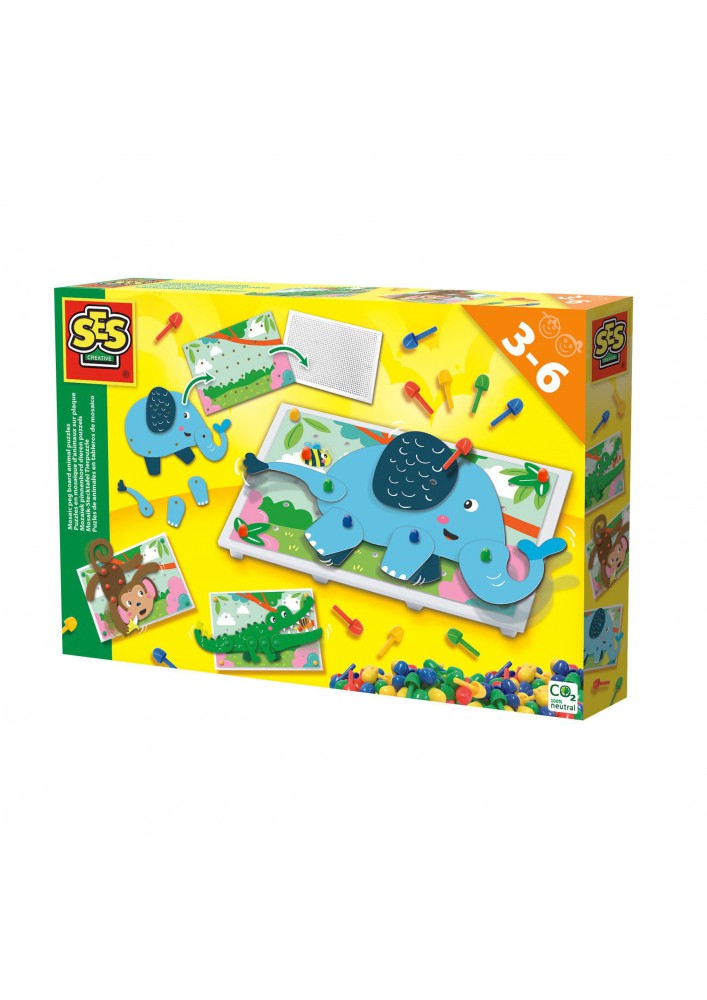 Met de SES Creative Mozaïek pinnenbord kun je dieren laten bewegen. Pin de verschillende onderdelen van de vrolijke dieren vast met een van de 100 gekleurde pinnen en ontdek hoe je de de bek van de krokodil of de poten van de olifant kunt laten bewegen. Geschikt voor kinderen vanaf 6 jaar.