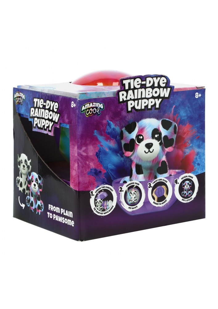 Dit product is een creatief speelgoedpakket genaamd “Shakems Rainbow Mix”, waarmee je je eigen tie-dye puppy kunt versieren. De stappen om het te gebruiken zijn als volgt: