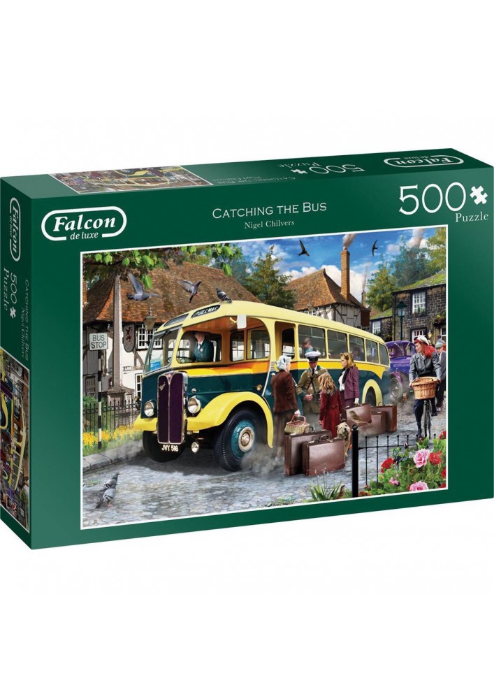 Hurry up! Catching The Bus! Bij deze legpuzzel van Falcon staan mensen klaar om de bus te halen. Ze staan klaar met koffers om op reis te gaan. Ontsnap uit de realiteit en stap in de wereld van deze Catching The Bus Falcon puzzel. Deze legpuzzel is gemaakt van karton, bevat 500 puzzelstukjes en is geschikt voor uren puzzelplezier en ontspanning.