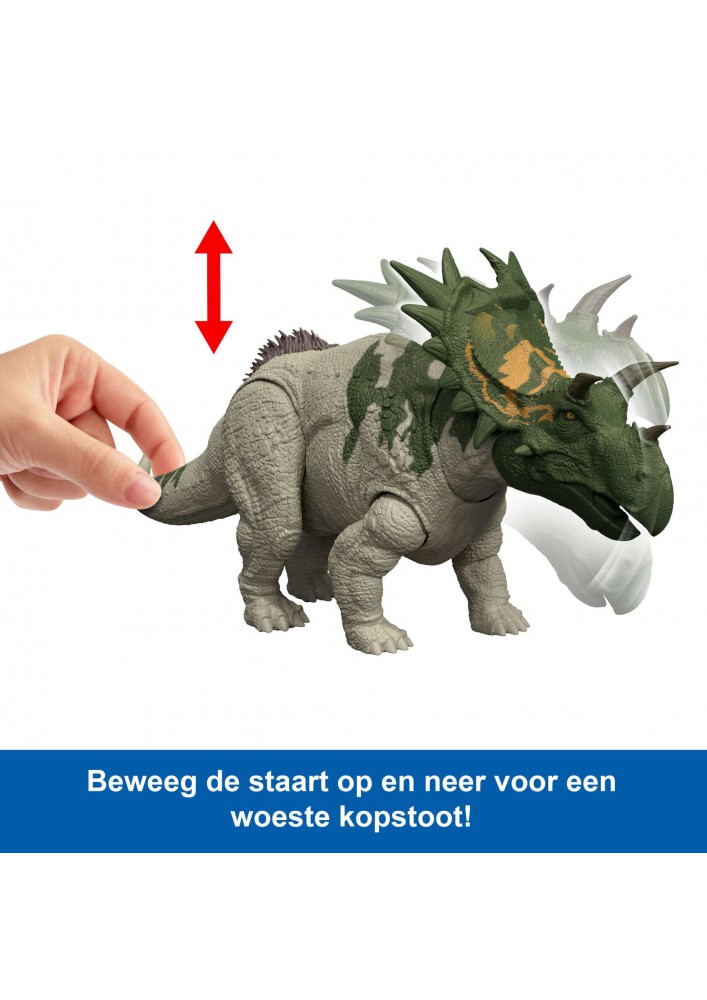 - Brullend in de aanval! Deze Wild Brullende Spiclypeus is geïnspireerd op Jurassic World Rebirth en zijn agressieve kopstoten kun je van richting veranderen. Het bloeddorstige gebrul zorgt voor extra spannend dinosaurusspel!