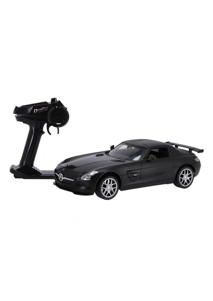 Radiografisch bestuurbare auto mercedes-benz 1:14 2.4g sls amg gt final edition zwart. Stoere bestuurbare wagen, zwarte sportwagen. Mercedes-Benz SLS AMG GT Final Edition op schaal 1:14. Max snelheid 12 km/u. 30 meter bereik. Deuren kunnen open. 2.4 GHZ. Geschikt voor kinderen vanaf 3 jaar.