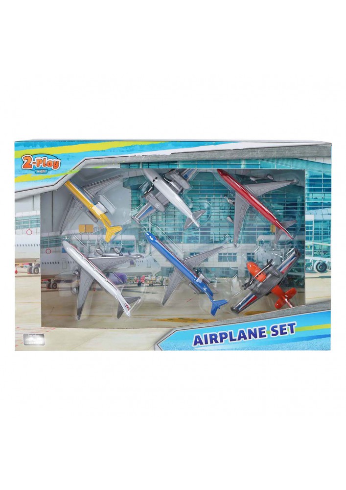 Vlieg weg met dit leuke setje van 6 vliegtuigjes! In de set zitten 6 kunststof vliegtuigjes die je kan tentoon stellen of mee kan spelen! die cast free wheel 7-10.5 cm