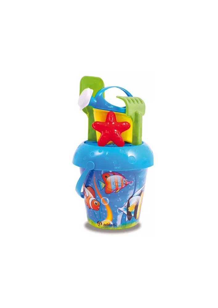 Écoiffier emmerset dolfijn 21 cm 14 delig. Emmertje, schepje, harkje, gieter, zandloper en 8 figuurtjes om mee in het zand te spelen. Geschikt voor kinderen vanaf 3 jaar.