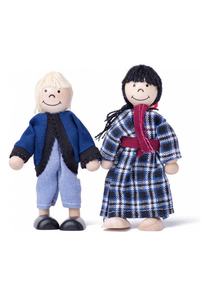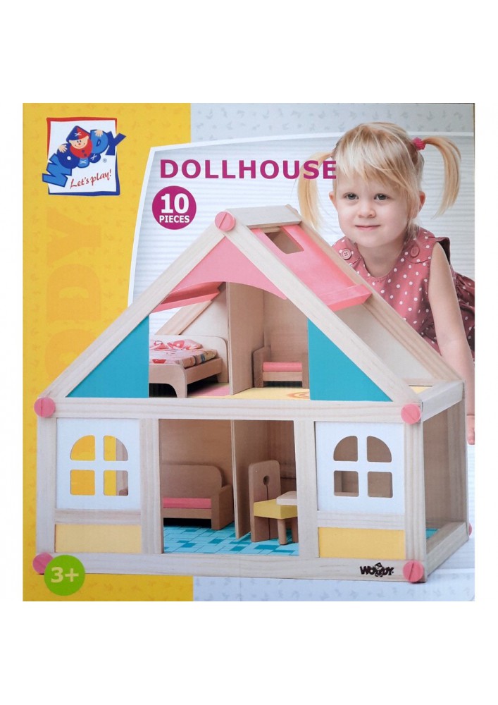 Woody Toys poppenhuis met poppen en meubeltjes