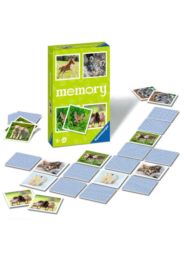 Memory® van Ravensburger is al meer dan 50 jaar het meest geliefde eerste spel dat een kind met andere spelen kan... en hoe! Meestal winnen zij gemakkelijk van volwassenen. Daarnaast oefent het kind spelenderwijs belangrijke vaardigheden zoals concentratie en uithoudingsvermogen. Door de grote kaarten van extra dik karton is deze memory® met afbeeldingen van jonge dieren al geschikt voor de allerkleinsten. Jonge Dieren Memory is geschikt voor twee tot acht spelers vanaf vier jaar.